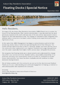 Important Information Regarding Floating Docks See below for a statement from the ABRA Board of Directors regarding the status of the two floating docks that