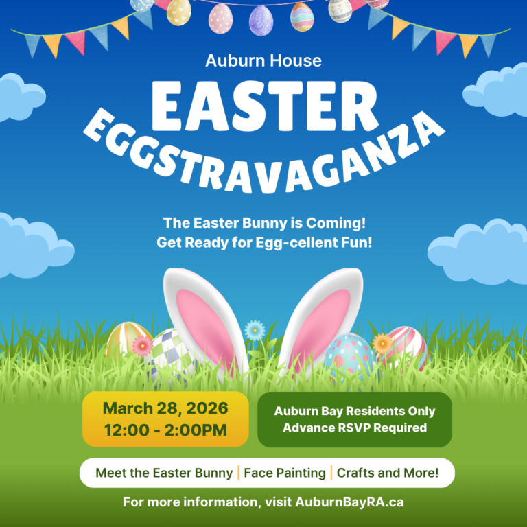 RSVP’s and your Family Reservation Fee* must be submitted through Eventbrite via AuburnBayRA.ca.