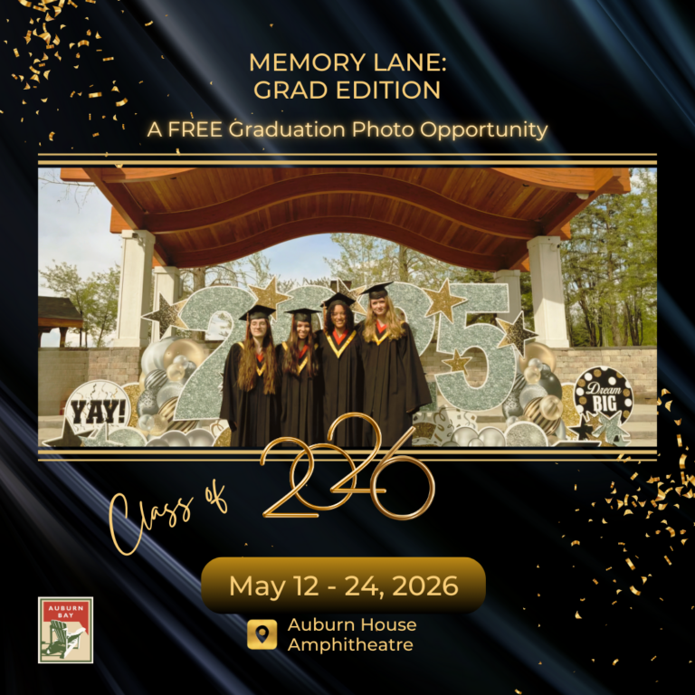 Auburn House invites graduating Auburn Bay students of all ages to stop by Auburn House Park for a unique and FREE photo opportunity. Whether you’re dressed to impress, keeping it casual, or wearing your cap and gown, this is the perfect chance to capture memories that will last a lifetime. Bring your family and friends and celebrate this special milestone in a picture-perfect setting!