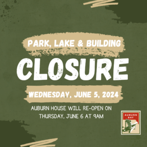 Due to circumstances beyond our control, Auburn House park and facility remain closed until our water service is restored by the City.